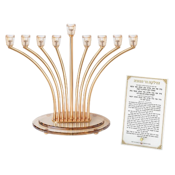 חנוכיה מתכת זהב עם קנים ובסיס קריסטל